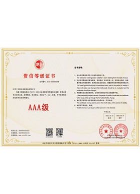 AAA級資信等級證書